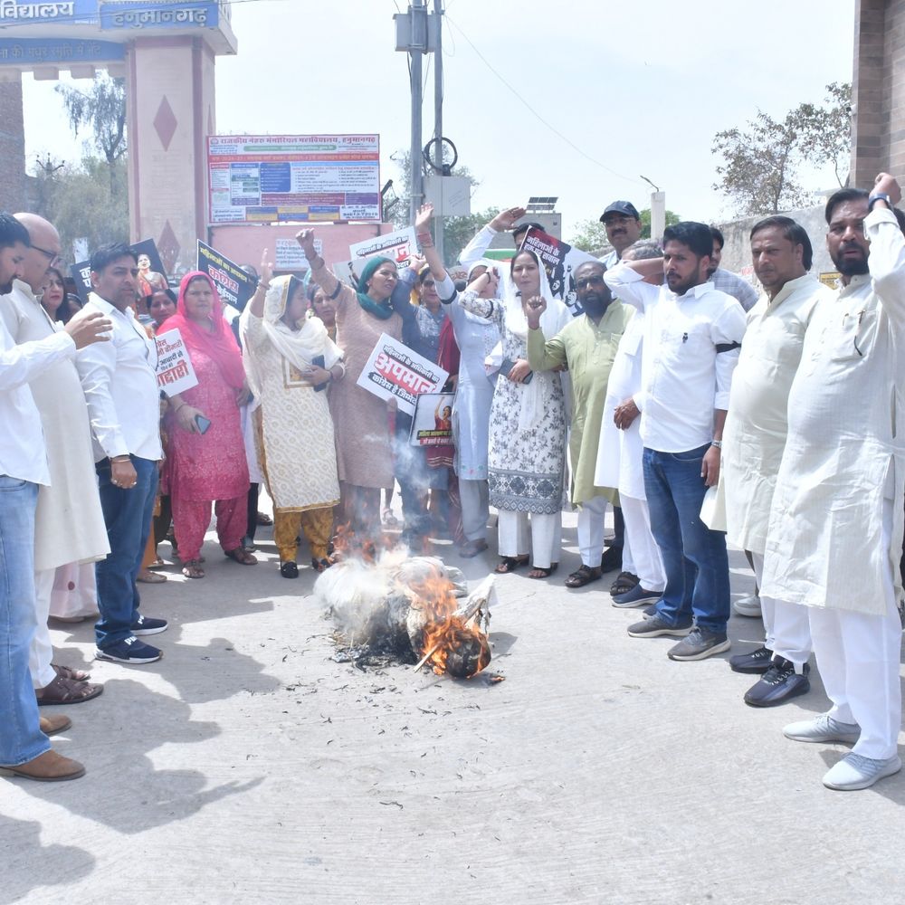 हनुमानगढ़ में भाजपा कार्यकर्ताओं ने महिला आरक्षण के मुद्दे पर प्रदर्शन किया। टाउन स्थित गवर्नमेंट एनएमपीजी कॉलेज के सामने हुए इस प्रदर्शन के दौरान कांग्रेस नेता राहुल गांधी का पुतला फूंका गया। कार्यकर्ताओं ने कांग्रेस के खिलाफ आक्रोश व्यक्त करते हुए “जन आक्रोश पदयात्रा” भी निकाली, जिसमें बड़ी संख्या में...