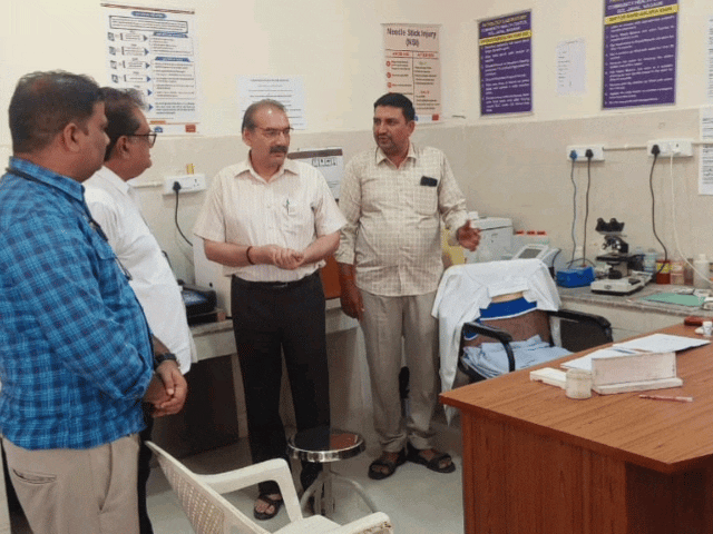 नागौर CMHO डॉ. जुगल किशोर सैनी ने मंगलवार को जिले के चिकित्सा संस्थानों का औचक निरीक्षण कर व्यवस्थाओं का जायजा लिया। उन्होंने राजकीय सामुदायिक स्वास्थ्य केंद्र रोल, प्राथमिक स्वास्थ्य केंद्र बोड़वा और उप स्वास्थ्य केंद्र अठीयासन में दवाओं, साफ-सफाई, पेयजल, विद्युत आपूर्ति व रिकॉर्ड संधारण की समीक्षा की। हीट वेव...