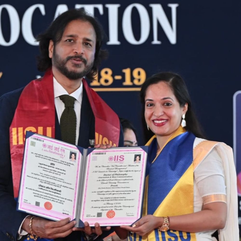 वरिष्ठ पत्रकार प्रीति को मानसरोवर स्थित आई.आई.एस. (डीम्ड टू बी यूनिवर्सिटी) के ग्यारहवें दीक्षांत समारोह में पीएचडी की डिग्री से…