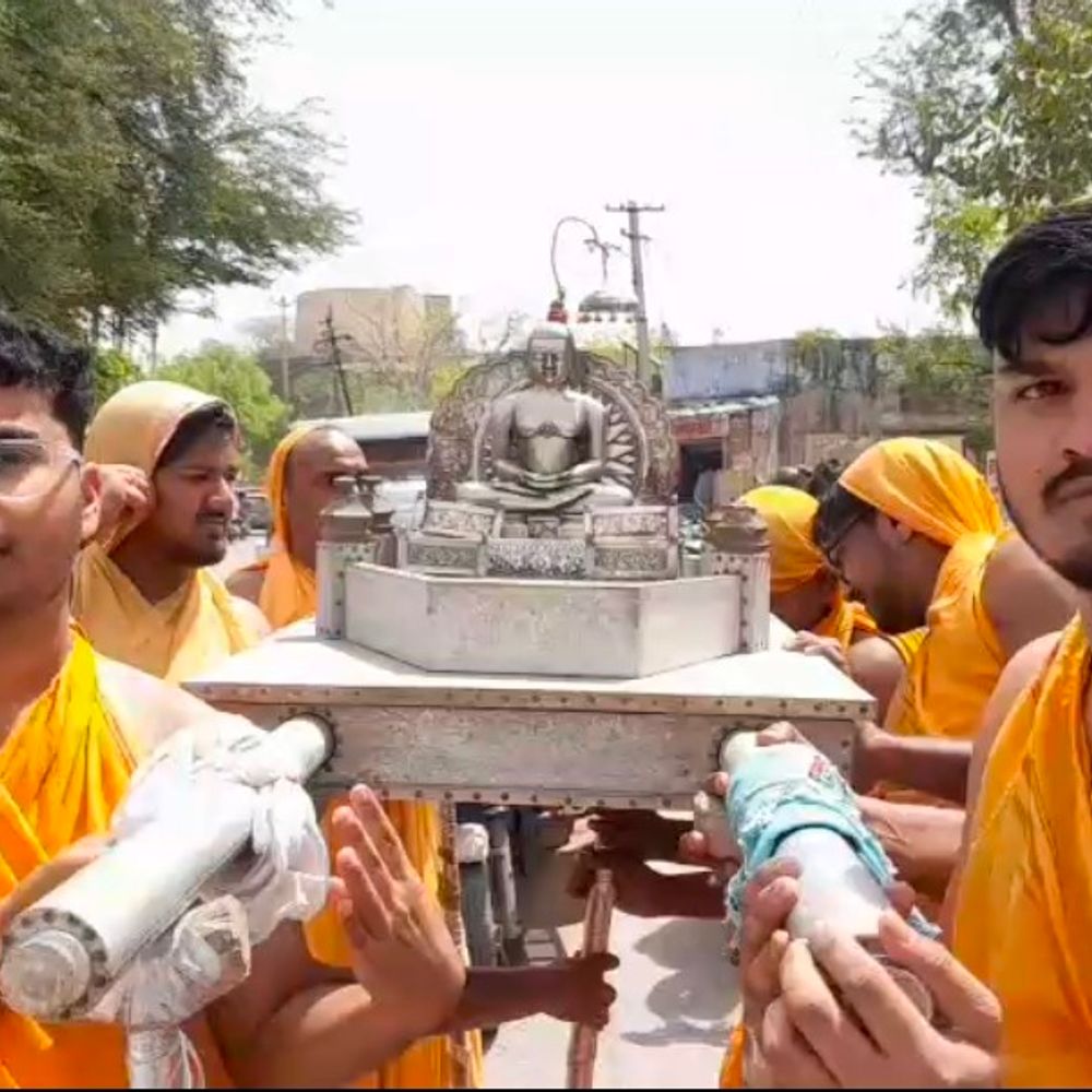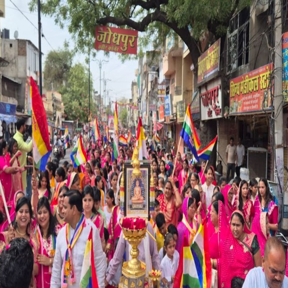 महावीर जयंती पर निकली भव्य शोभायात्रा:जैन समाज ने लोगों ने उत्साह के साथ हुए शामिल, लगाए जयकारे