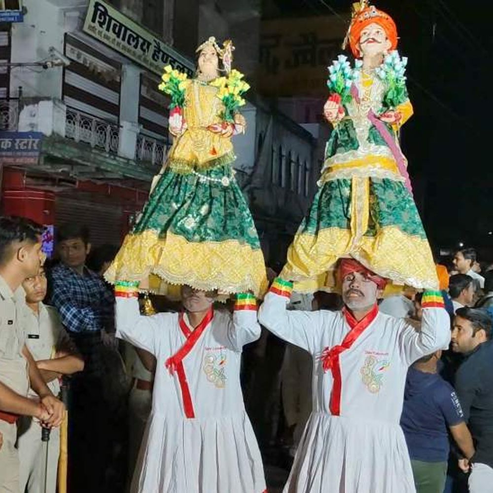 बारां में निकली गणगौर की शाही सवारी:स्वर्ण आभूषणों से सजे ईसर-गणगौर के जोड़े, प्रेमानंद महाराज की झांकी मुख्य आकर्षण