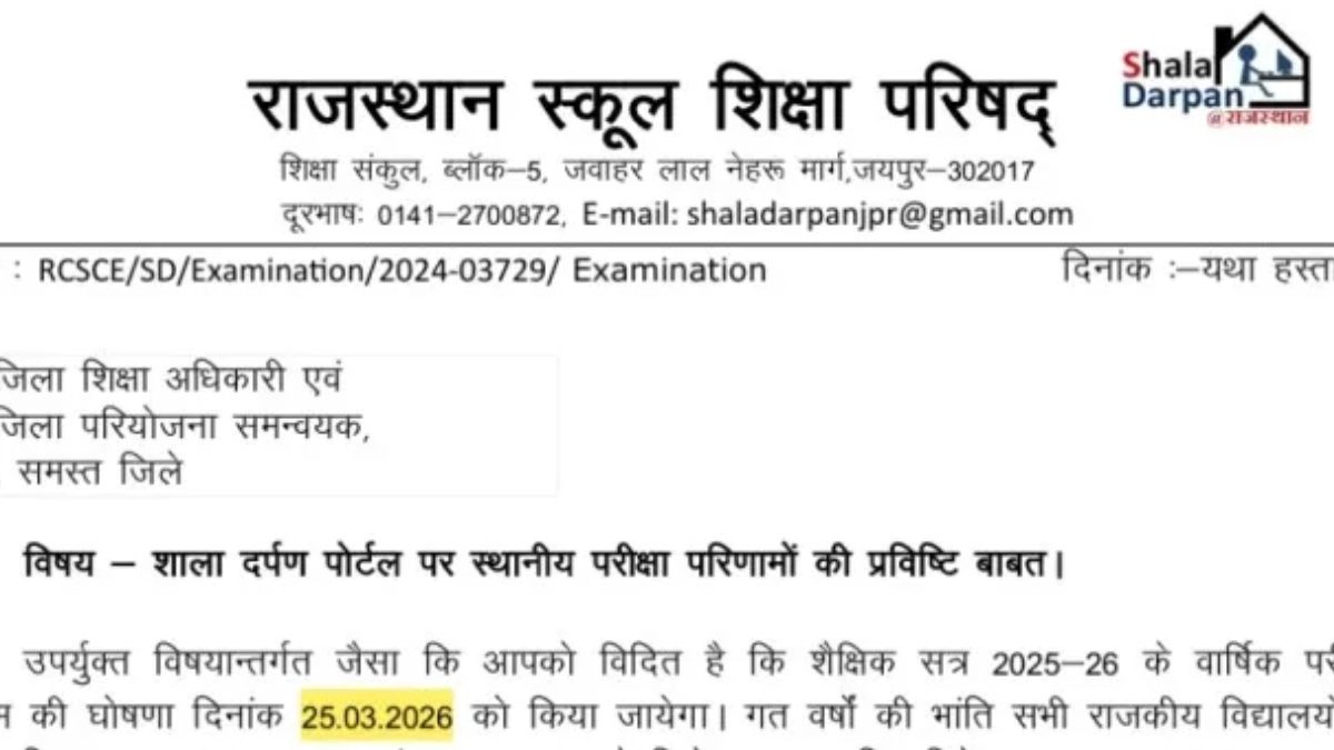 RBSE 9th, 11th Result 2026: राजस्थान स्कूल शिक्षा परिषद् द्वारा 25 मार्च, 2026 को 9वीं और 11वीं का रिजल्ट जारी…