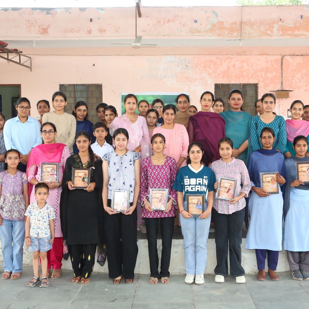 राधा कृष्ण मंदिर के स्थापना दिवस पर निकाली शोभायात्रा:महिलाएं सिर पर मंगल कलश लिए भजन-कीर्तन गाती हुई चल रही थीं