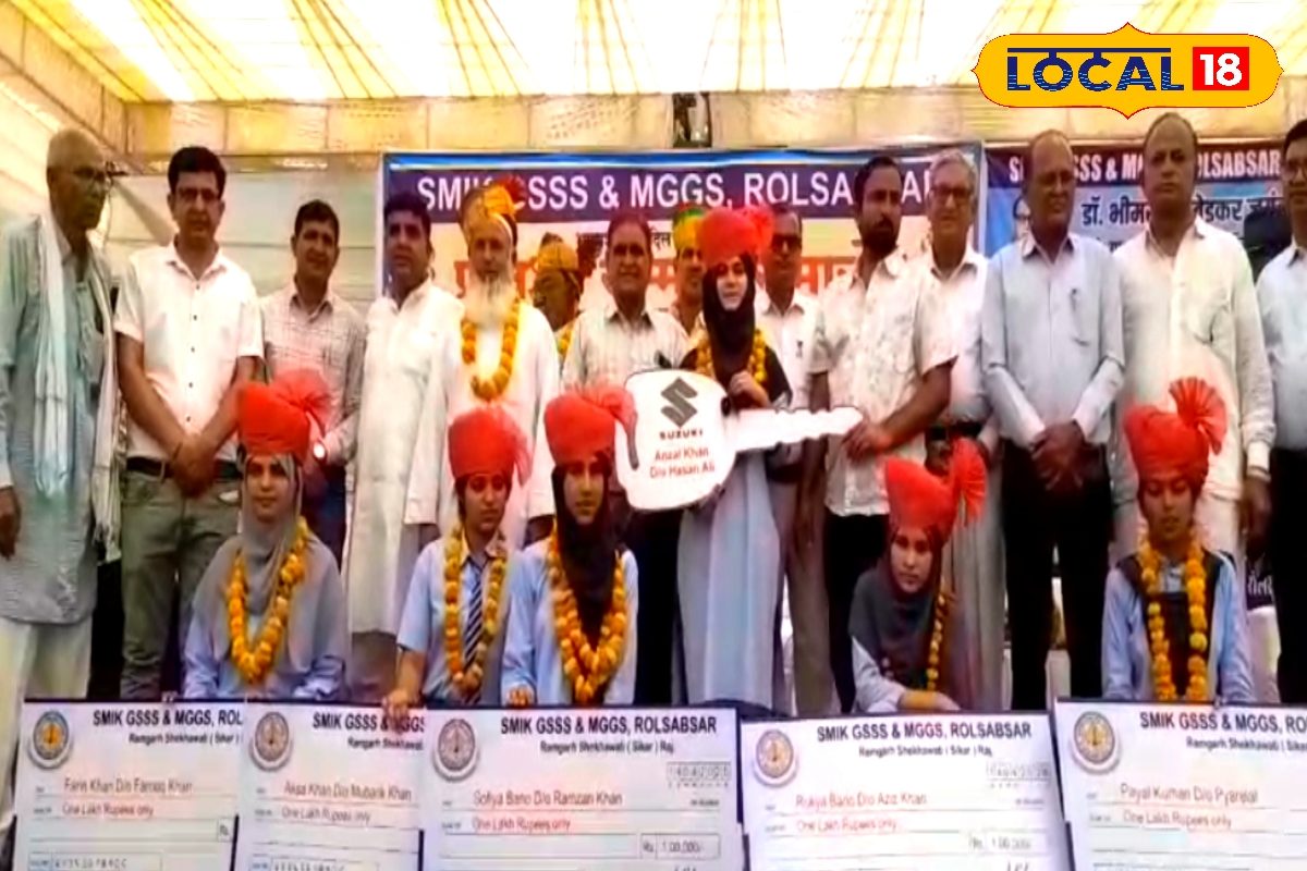 Sikar News : सीकर के रोलसाहबसर में भामाशाह आदिल खान ने सरकारी स्कूल की टॉपर बेटियों को कार और एक लाख के नकद इनाम दिए, लक्ष्य बच्चों को आईएएस आईपीएस जैसी सेवाओं तक पहुंचाना. इस पहल की खास बात यह रही कि घोषणा बेटों और बेटियों दोनों के लिए की...